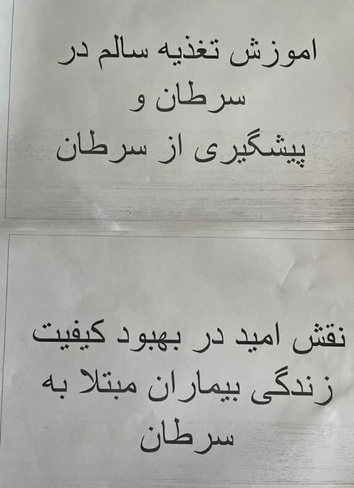 به گزارش روابط عمومی ؛ جلسات آموزشی توسط کارشناسان تغذیه و سلامت روان با موضوعات تغذیه سالم در پیشگیری از سرطان و نقش امید در بهبود کیفیت زندگی در بیماران مبتلا به سرطان در محل مرکز خدمات جامع سلامت شهداء جاجرم برگزارگردید